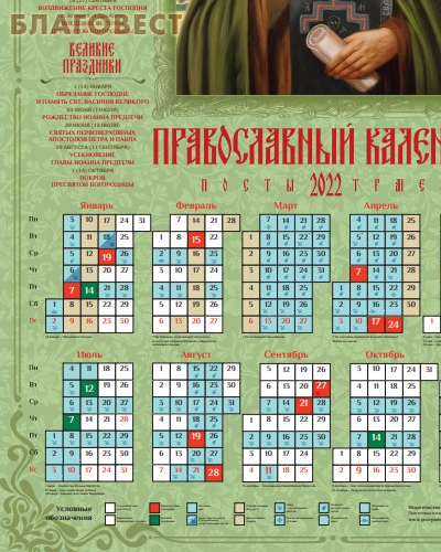 Православный листовой календарь Сергий Радонежский на 2022 год, размер А2, (продается упаковкой по 100 шт)