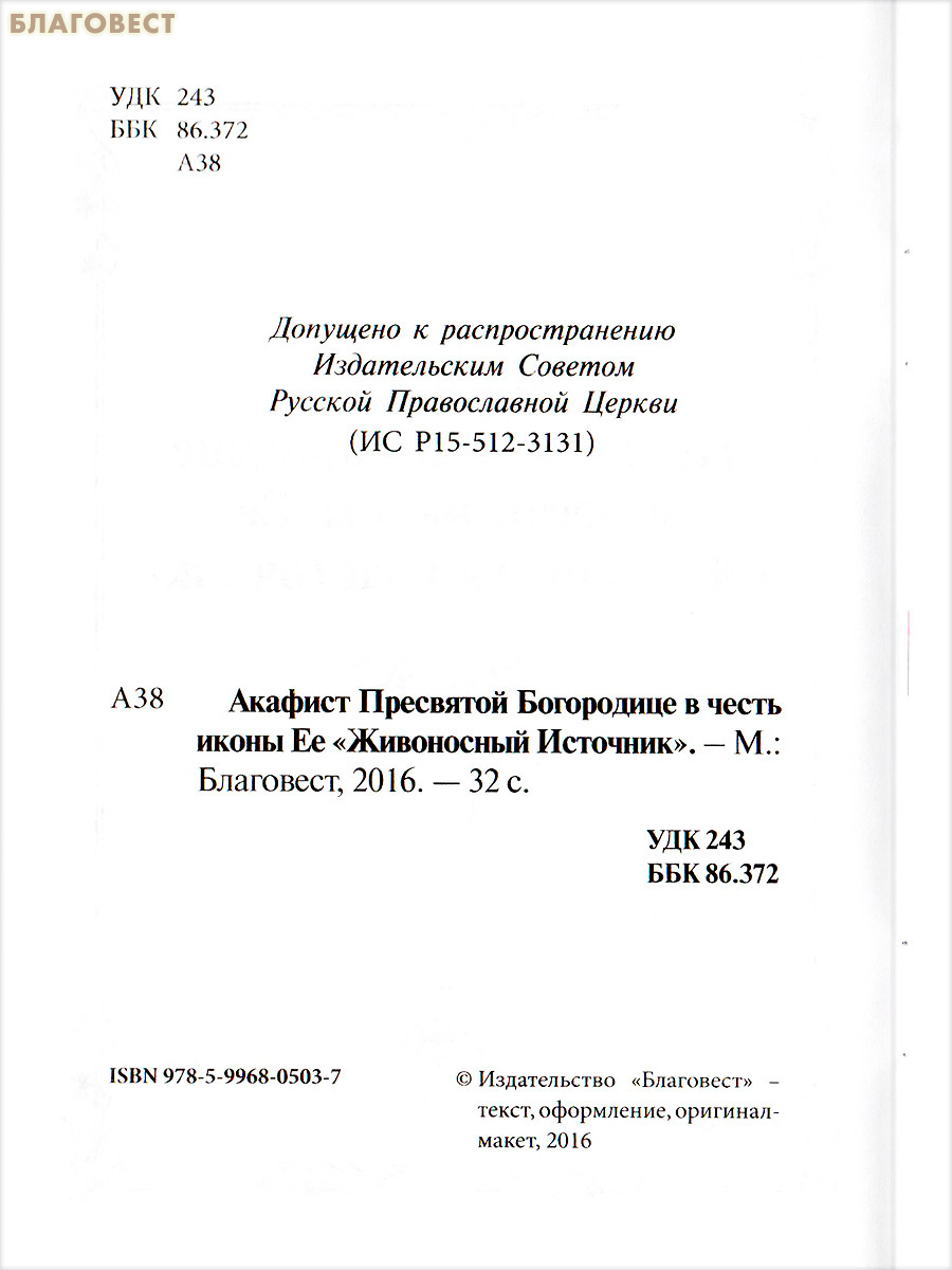 Акафист Пресвятой Богородице в честь иконы Ее «Живоносный источник»