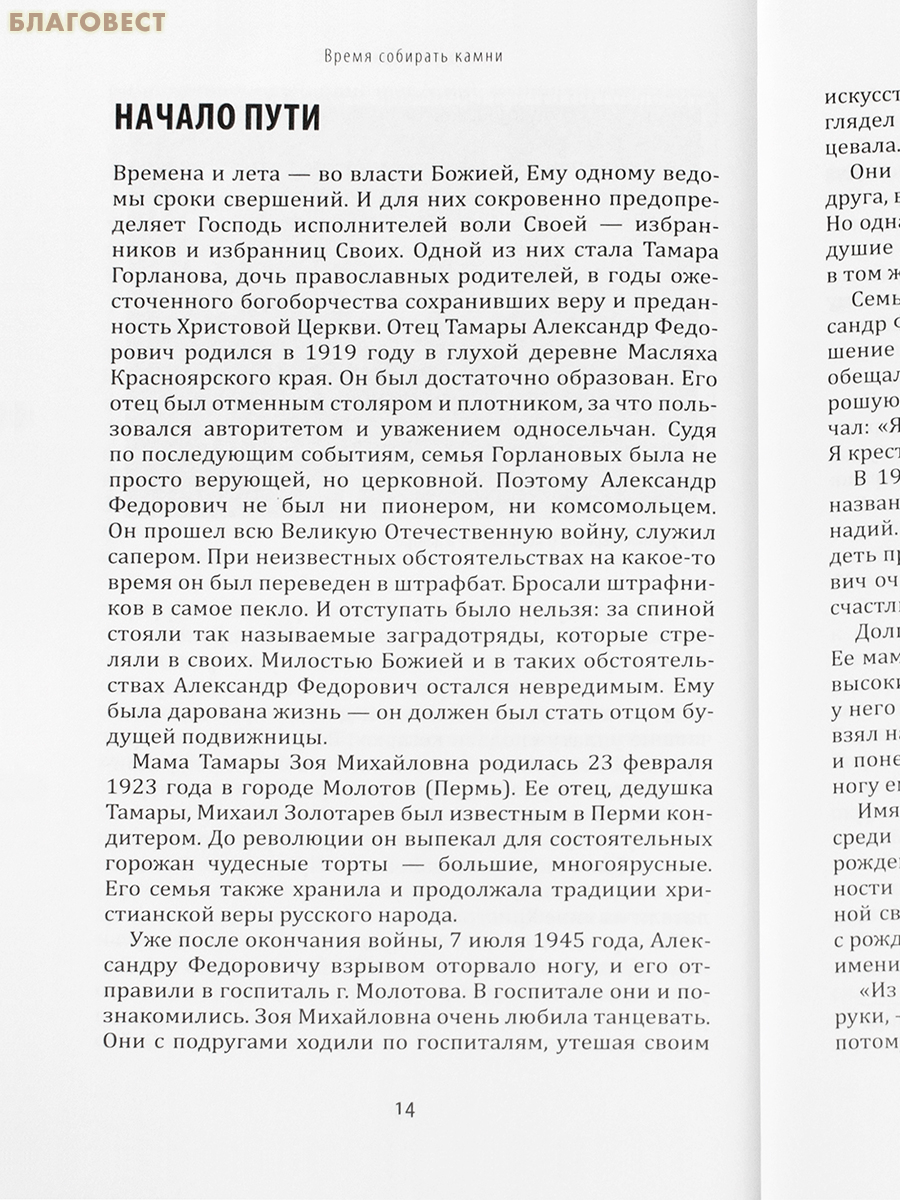 Книга посвящена игумении Муромского Свято-Троицкого монастыря Тавифе, в схиме Фамари (Горлановой; 1952-2016), подвигу ее самоотверженного служения и удивительной жизни. Матушка Тавифа проходила свое духовное становление под руководством двух великих игумений: Пюхтицкого монастыря Варвары (Трофимовой) и Рижского — Магдалины (Жегаловой). Она соединила в себе духовный опыт этих обителей и на этом основании возродила разрушенный и оскверненный Свято-Троицкий монастырь в Муроме, а также многие другие монастыри и храмы. Своей жизнью и трудами она выполнила главную заповедь — о любви к Богу и ближнему.