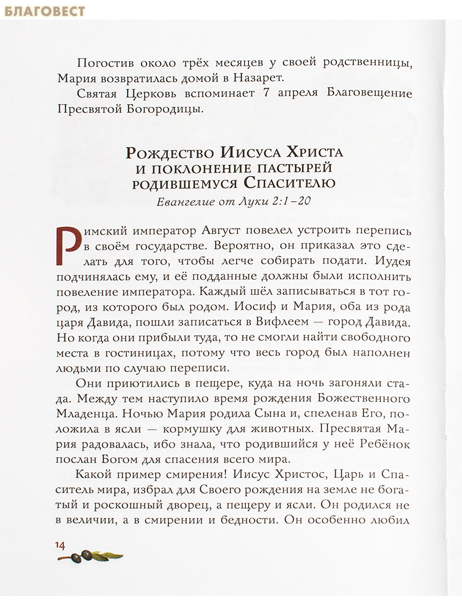 Большой формат, яркие иллюстрации, плотная белая бумага, чёткий шрифт. Цветные иллюстрации почти на каждом развороте. Евангельские сюжеты пересказаны увлекательно и понятно для детей. Для самостоятельного чтения или совместного чтения со взрослыми.