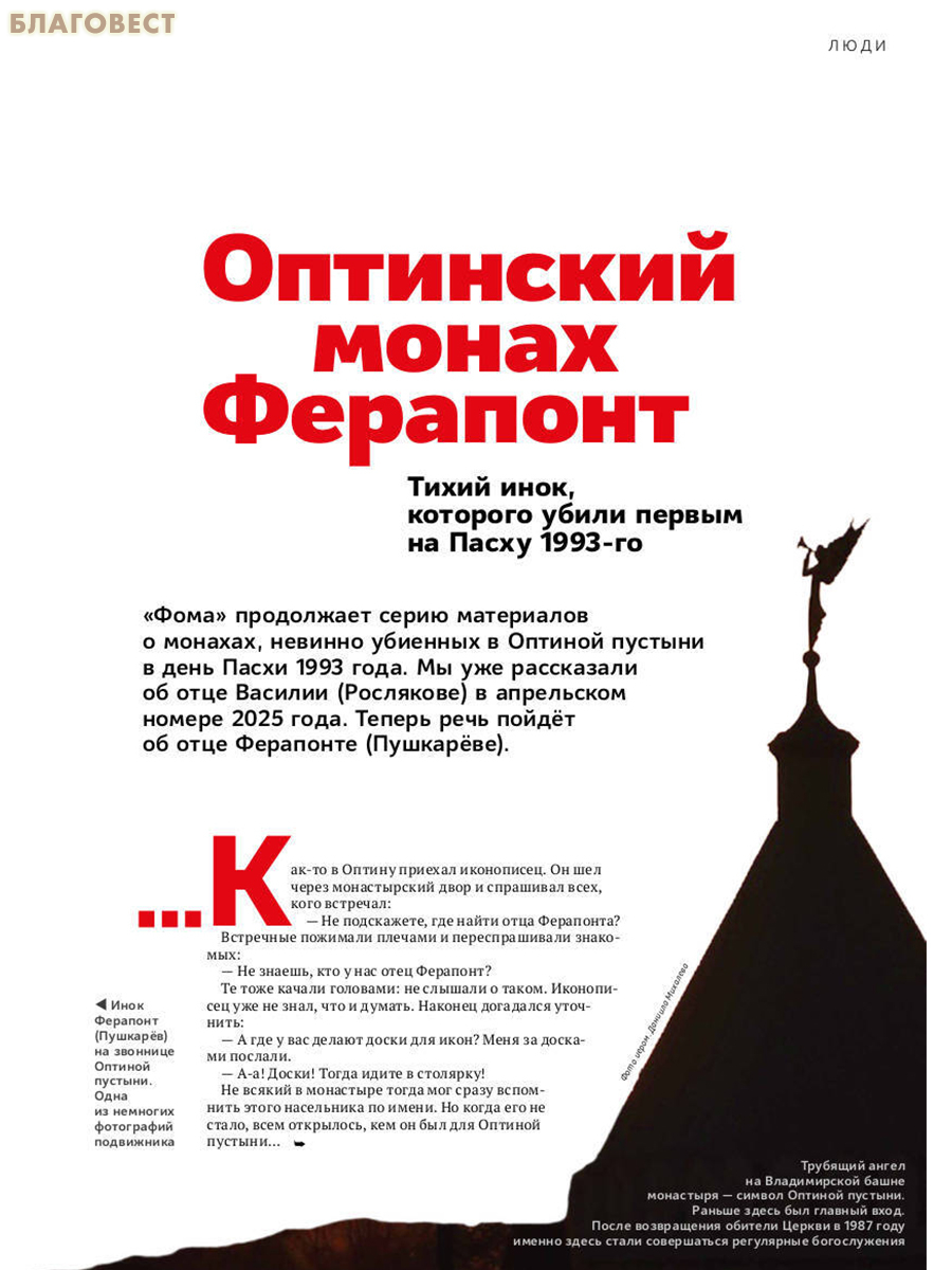 - Оптинский монах Ферапонт. Тихий инок, которого убили первым на Пасху 1993-го.