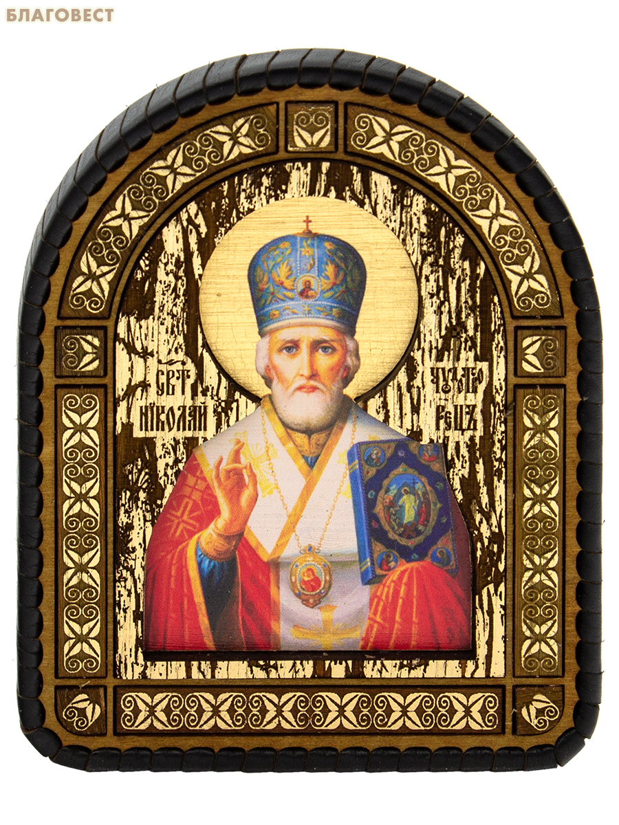 Икона арочная в кожаной оплетке Святитель Николай Чудотворец, дерево, размер 9,5х11,5см