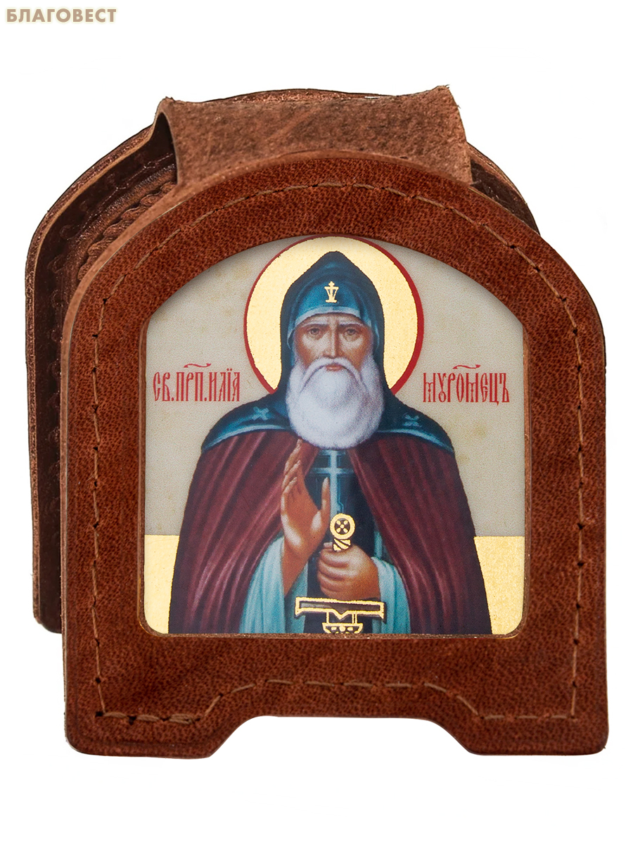 Икона дорожная раскладная Преподобный Илия Муромский (натуральная кожа). Цвет коньяк