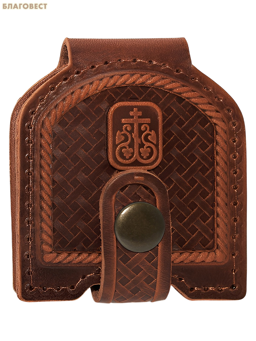 Икона дорожная раскладная «Преподобный Илия Муромский». Цвет коньяк. Обложка изготавливается из натуральных сортов кожи и имеет удобную складывающуюся конструкцию, которая надежно обеспечивает сохранность размещенных в ней изображений во время транспортировки. Дополнительной особенностью такой конструкции является наличие в ней универсальной кнопки-застежки, которая в случае обратного перестегивания хлястика, позволяет удерживать установленную на стол открытую икону в устойчивом вертикальном положении.
