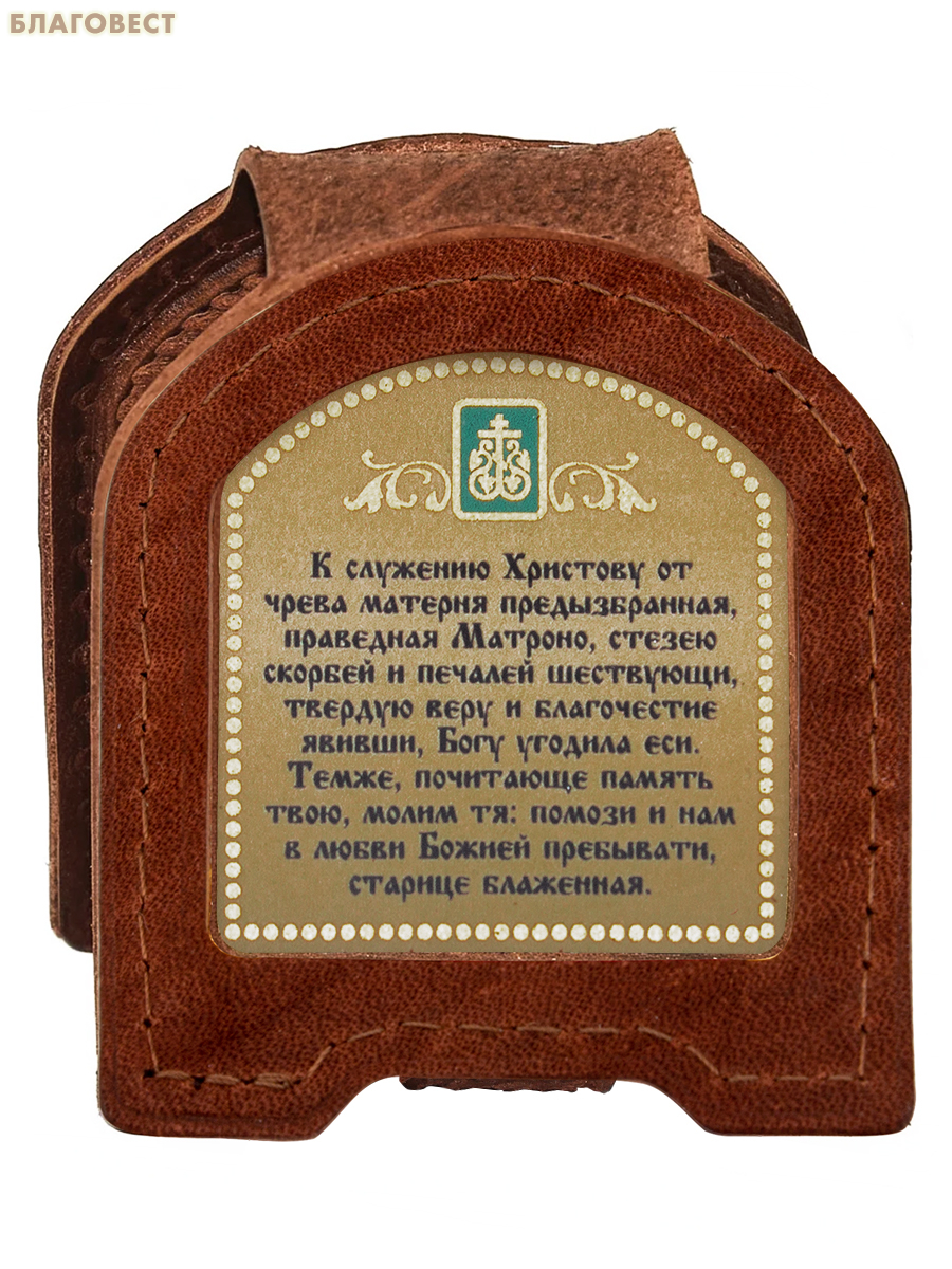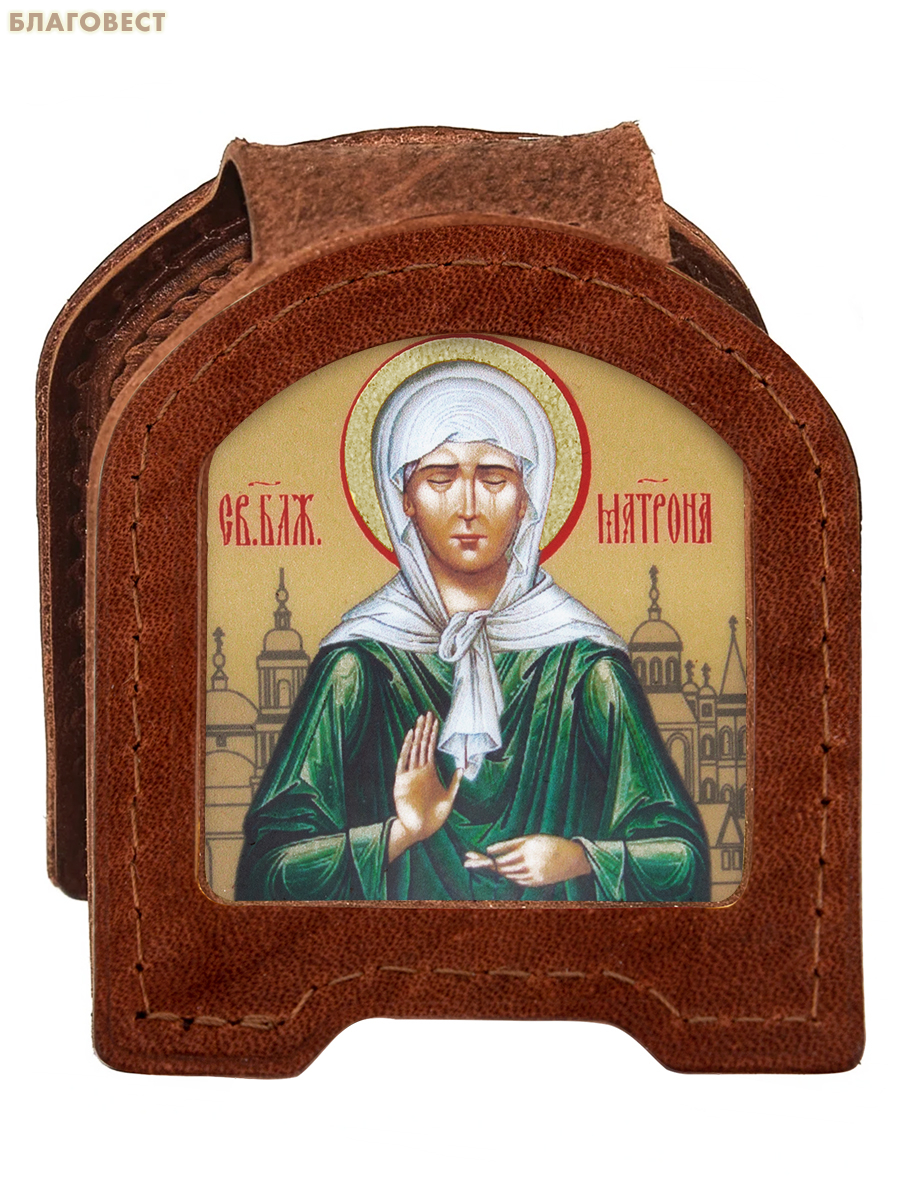 Икона дорожная раскладная Святая блаженная Матрона Московская (натуральная кожа). Цвет коньяк