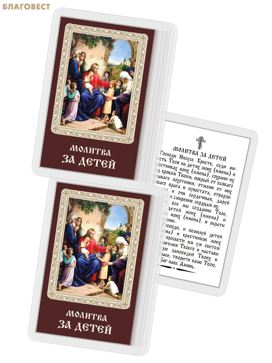 Комплект из 10 ламинированных икон «Благословение детей» с молитвой за детей.