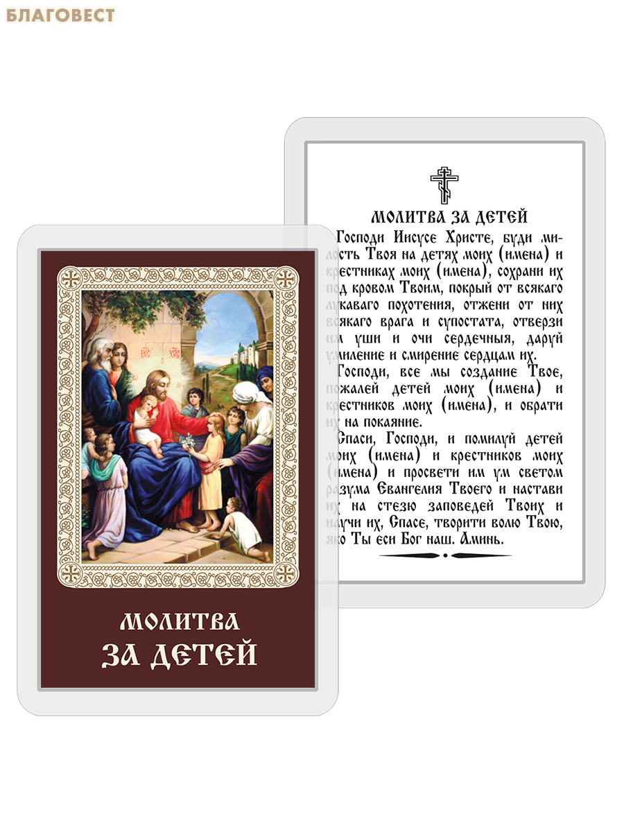 Икона Благословение детей ламинированная, с молитвой, размер 5,5х8,5см, (упаковка 10шт)