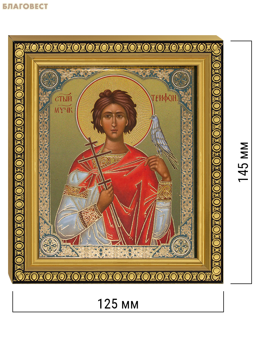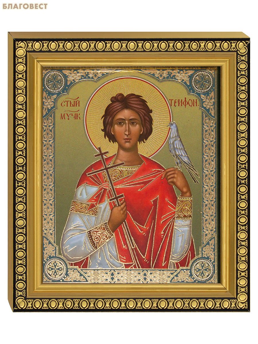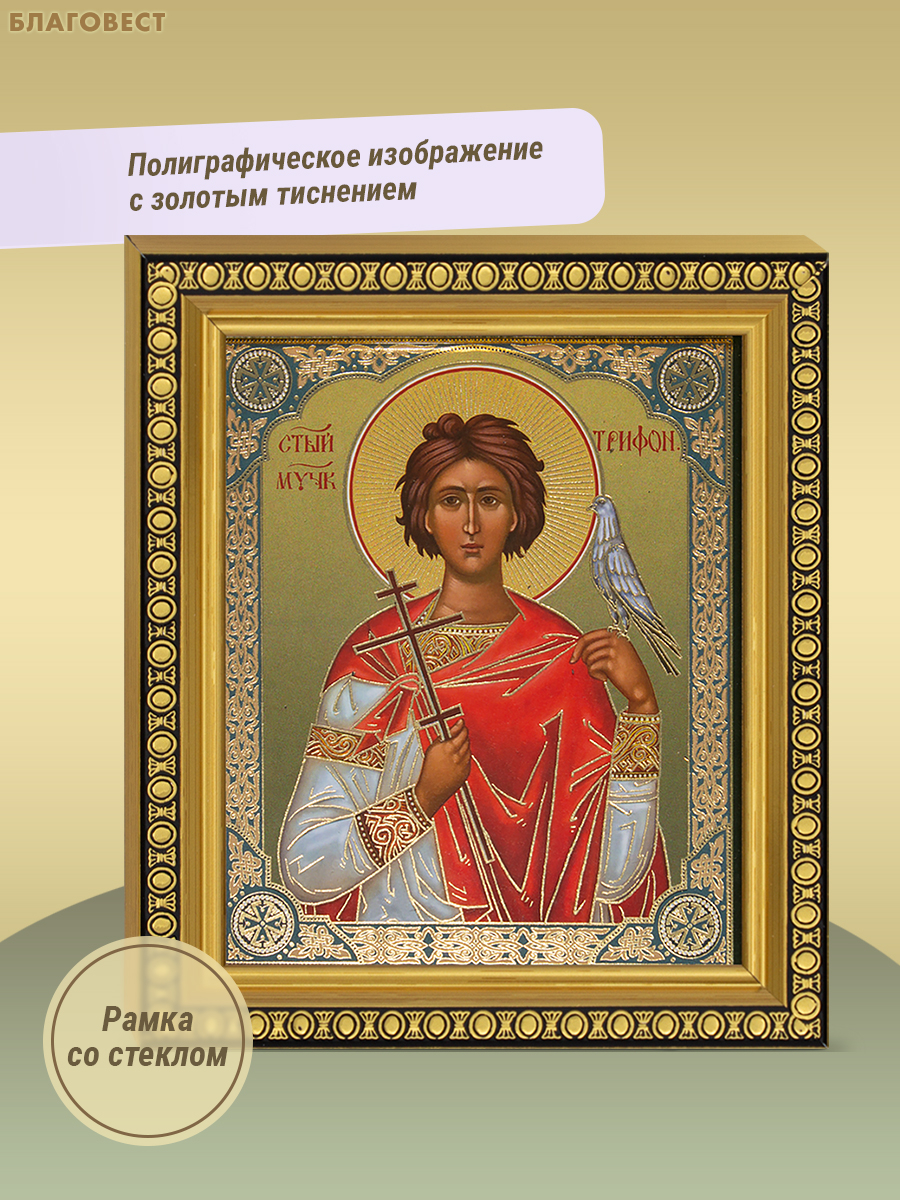 Икона Святой мученик Трифон Апамейский 12,5х14,5см, полиграфия, рамка