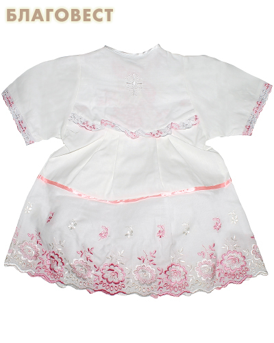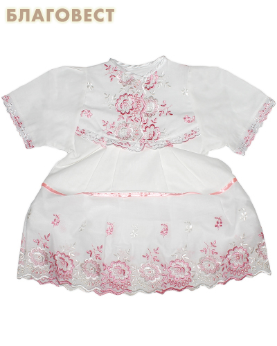 Крестильный набор "Роза" (платье, капор, полотенце) для девочки до 1 года