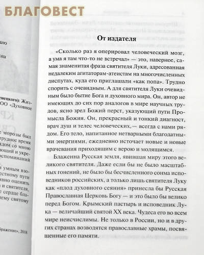 «Путь по замерзшему Енисею в сильные морозы был очень тяжел для меня. Однако именно в это трудное время я очень ясно, почти реально ощущал, что рядом со мною Сам Господь Бог Иисус Христос, поддерживающий и укрепляющий меня», — писал в своей книге воспоминаний «Я полюбил страдания» святитель Лука. Наше новое издание приглашает читателя умным взором и сострадающим сердцем пройти по крестному пути с архиепископом Лукой, попытаться объективно оценить величие христианской твердости исповедника и святителя, восхититься его подвигом веры и согреть свое сердце благоговейной памятью и молитвой к величайшему святому XX столетия.