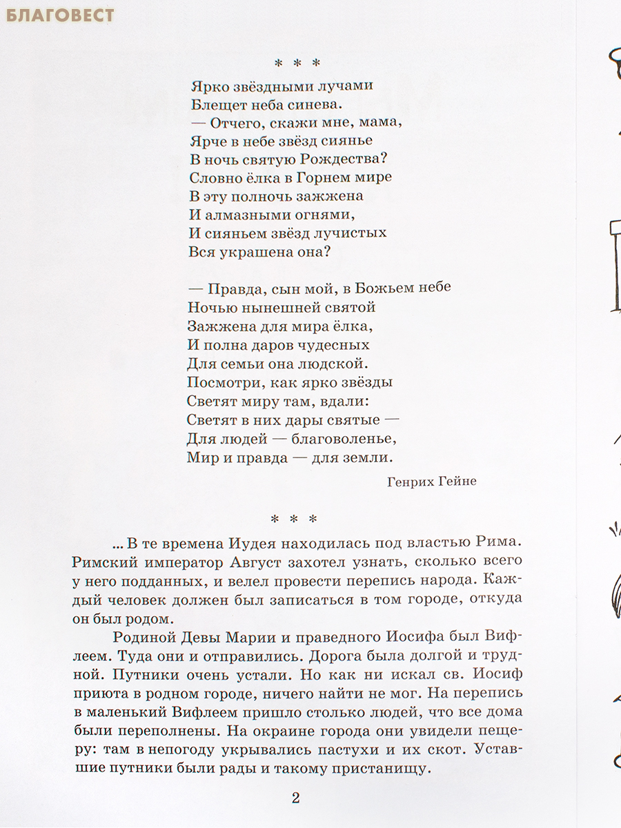 Предлагаем вашему вниманию религиозное духовно-просветительское издание для детей младшего школьного возраста. В книге использованы произведения Г.Гейне, С.Черного, Ф.Глинки, народная поэзия.