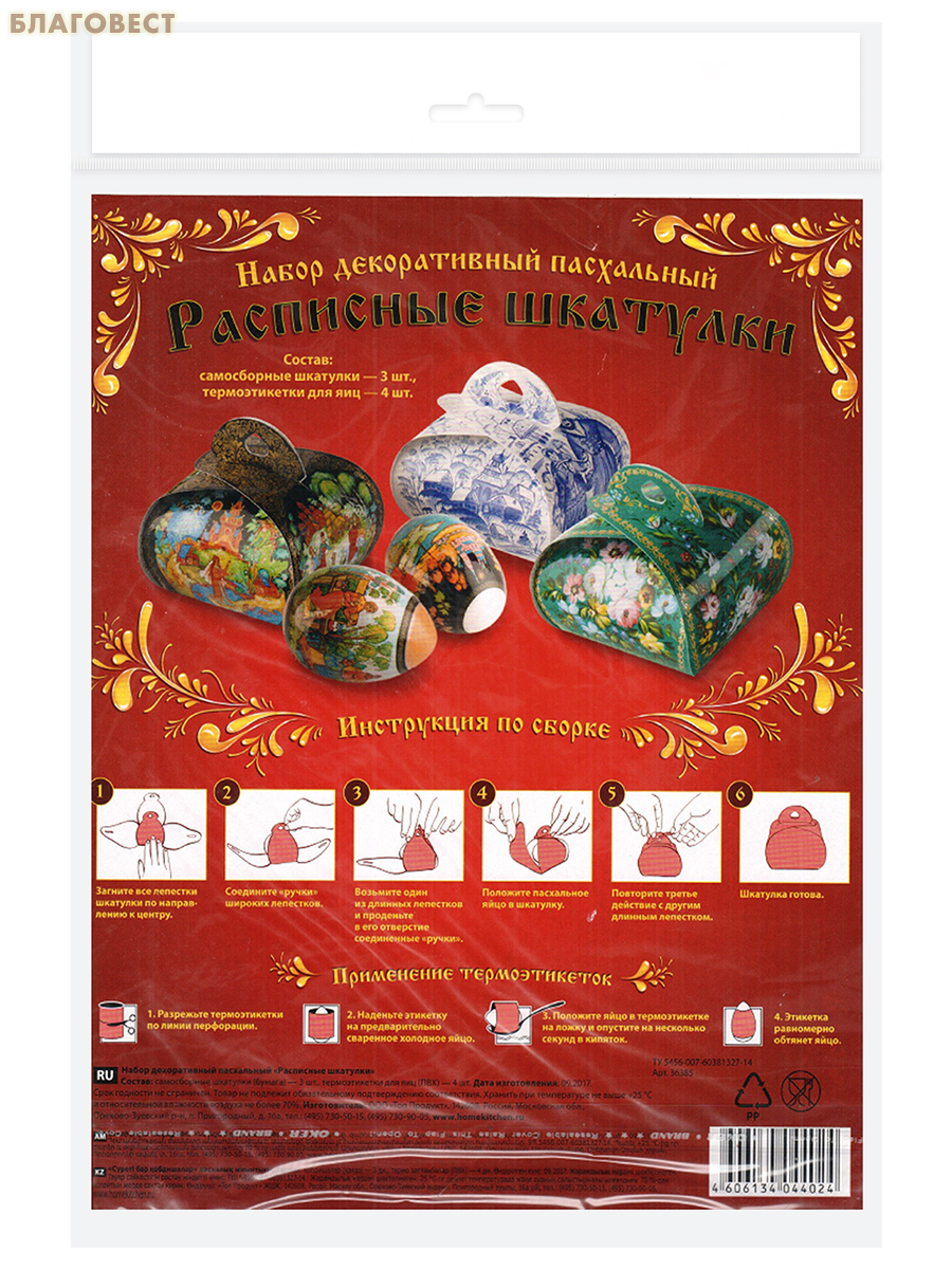 Набор декоративный пасхальный «Расписные шкатулки» (шкатулки - 3шт, термоэтикетки - 4шт), в ассортименте