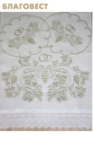 Цвет вышивки праздничный золотистый. Узор в виде винограда символизирует знак Жизни Вечной.