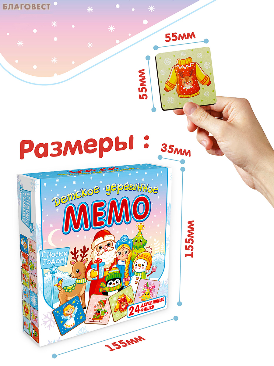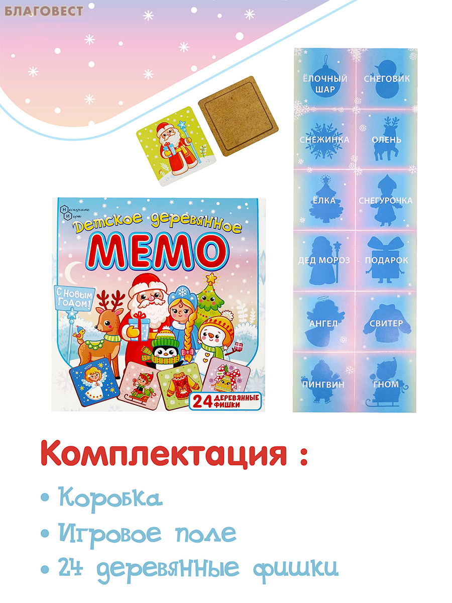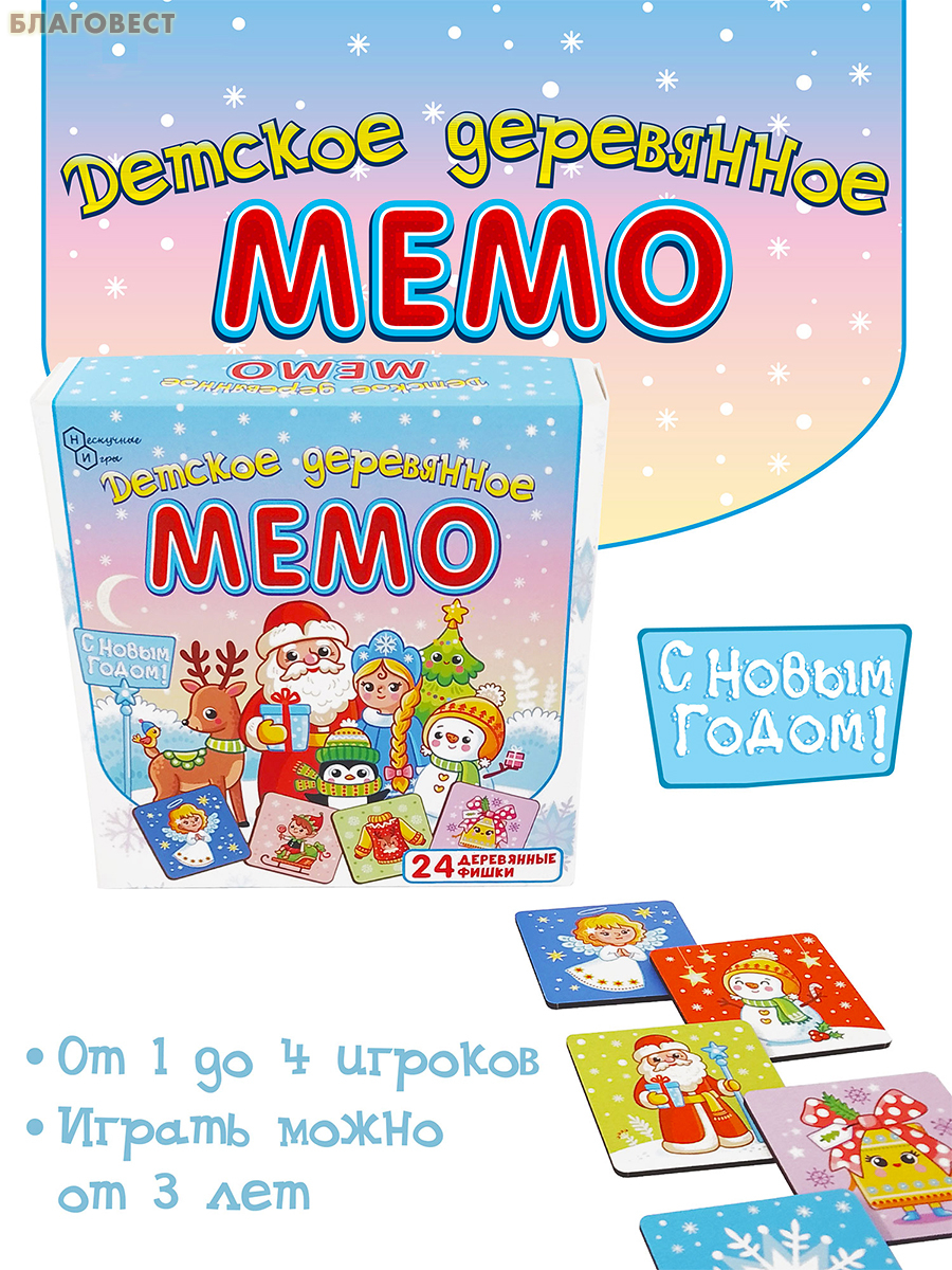 Настольная игра Мемо С Новым Годом! (24 деревянные фишки)