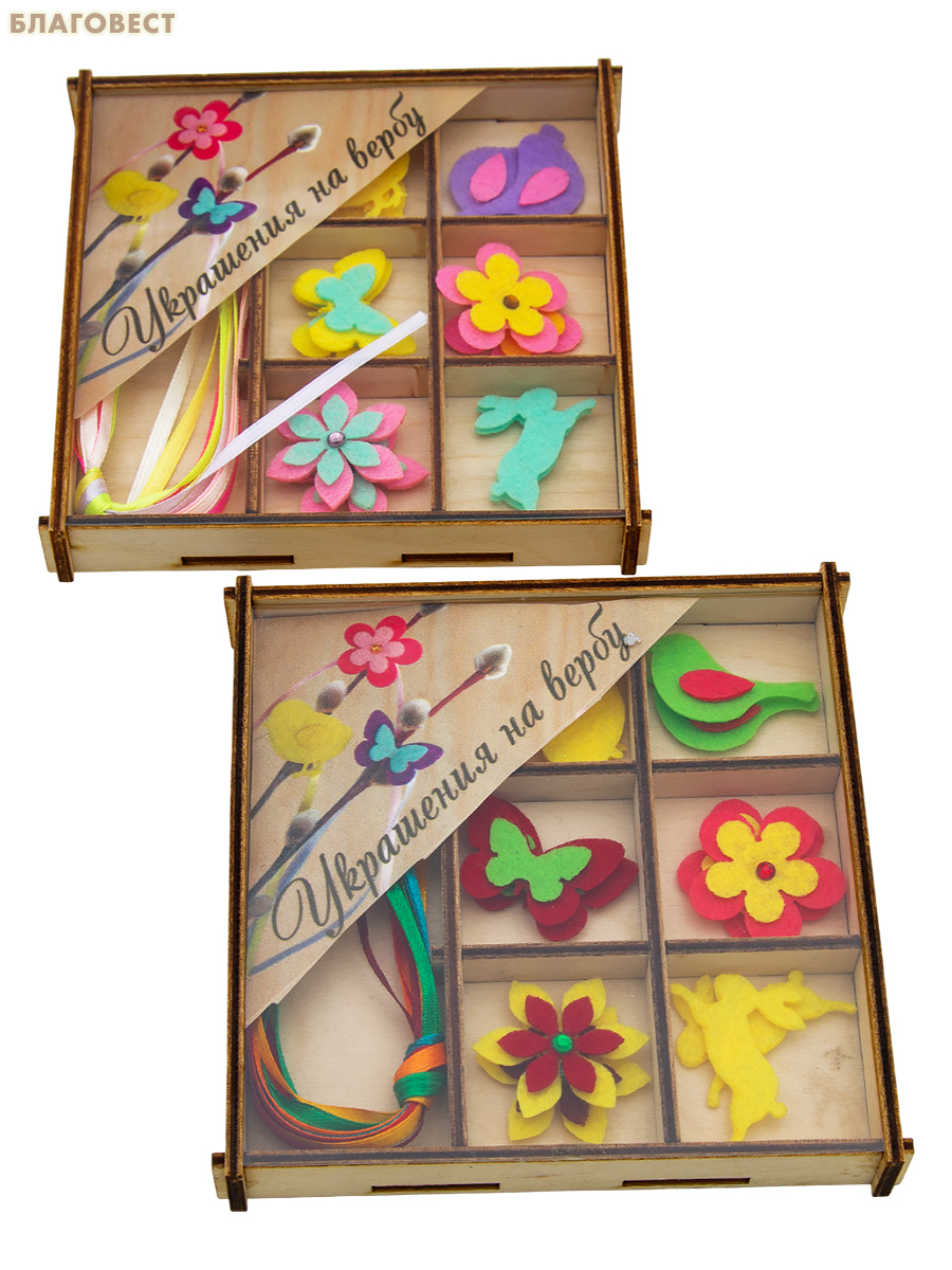 Пасхальный набор декоративных украшений на вербу из фетра (в ассортименте)