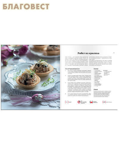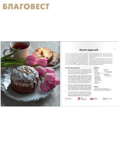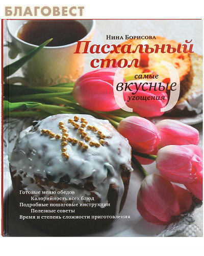 Этот сборник рецептов для праздничного пасхального стола содержит несколько вариантов комплексных обедов. Основа каждого из них — разная. Мясо или рыба, птица или овощи. Хозяйке остается только выбрать один из предлагаемых вариантов, или скомбинировать трапезу на свой вкус. Альбом иллюстрирован красочными фотографиями предлагаемых блюд. Рецепты содержат информацию о количестве калорий, степени сложности и времени приготовления. Ангела вам за трапезой!