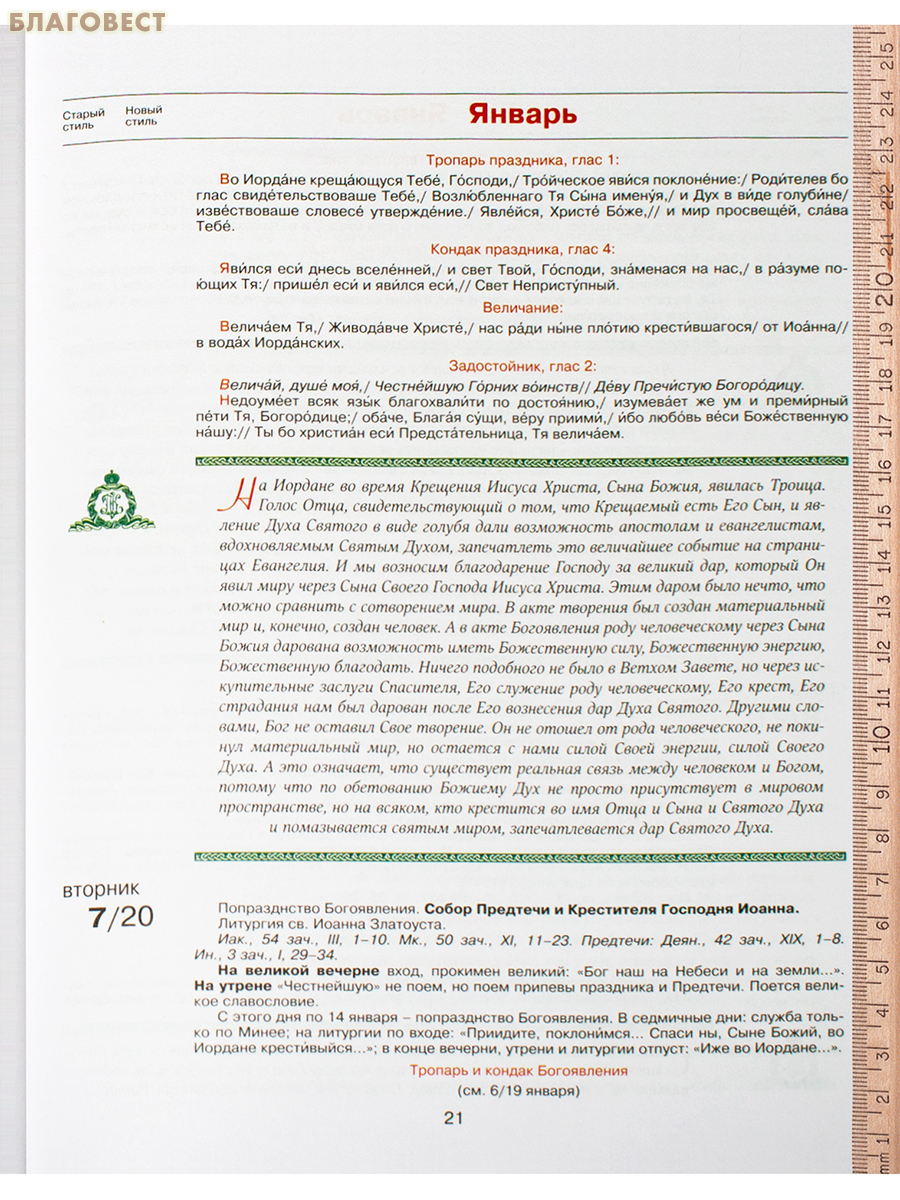 Патриарший календарь продолжает традицию полного официального календаря-справочника по предстоящему богослужебному году и устройству Русской Православной Церкви. Уникальное издание включает традиционный полный месяцеслов с развернутыми богослужебными заметками, тропарями и кондаками, а также фрагменты проповедей Святейшего Патриарха Московского и всея Руси Кирилла на каждый день церковного года. В календаре приводятся тропари и кондаки тех праздников или святых, совершение служб которым предусматривается Богослужебными указаниями, выпускаемыми Издательством Московской Патриархии. В богослужебных заметках раскрываются литургические особенности предстоящего года.