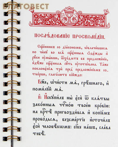 Издательство Московской Патриархии выпустило в свет «Последование проскомидии», выполненное в виде блокнота на металлической пружине. Принцип блокнота позволяет полностью раскрыть книжку и не заботиться всё время совершения проскомидии о том, чтобы книжка не закрывалась, как это обычно бывает с любым служебником в твёрдом переплете.