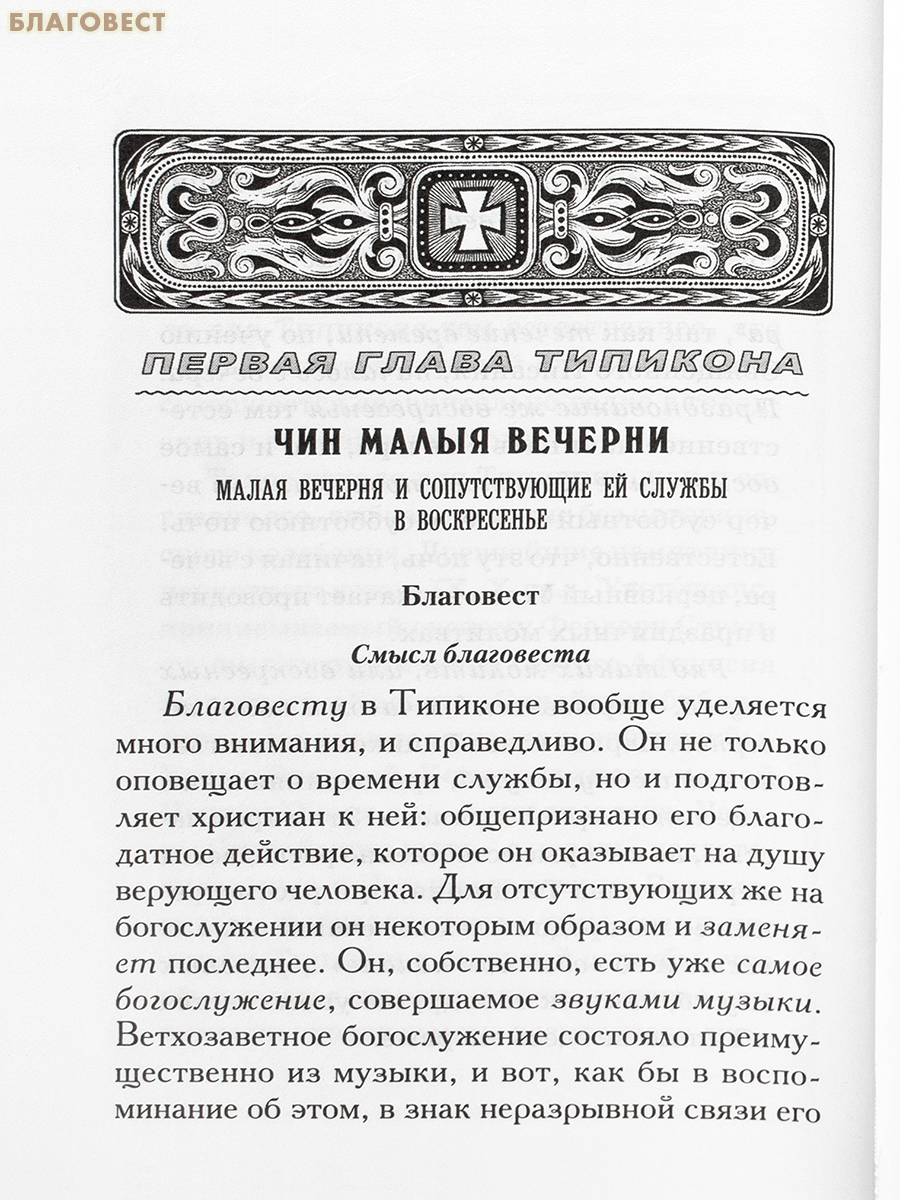 Первая глава Типикона. ЧИН МАЛЫЯ ВЕЧЕРНИ. Малая вечерня и сопутствующие ей службы в воскресенье