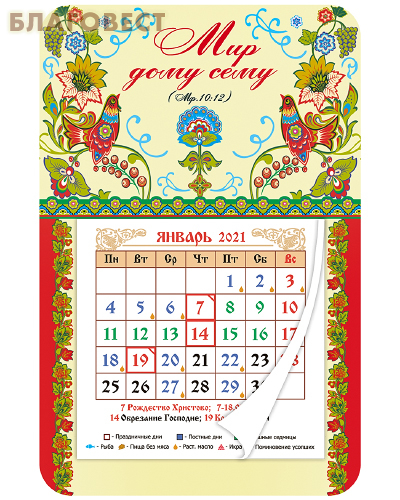 Православный календарь-магнит с отрывным блоком "Мир дому сему" на 2021 год