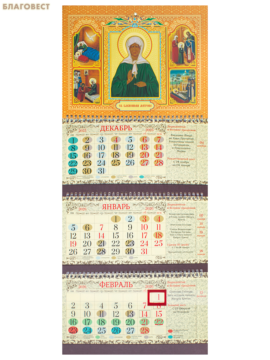 Православный квартальный календарь Святая блаженная Матрона Московская на 2026 год