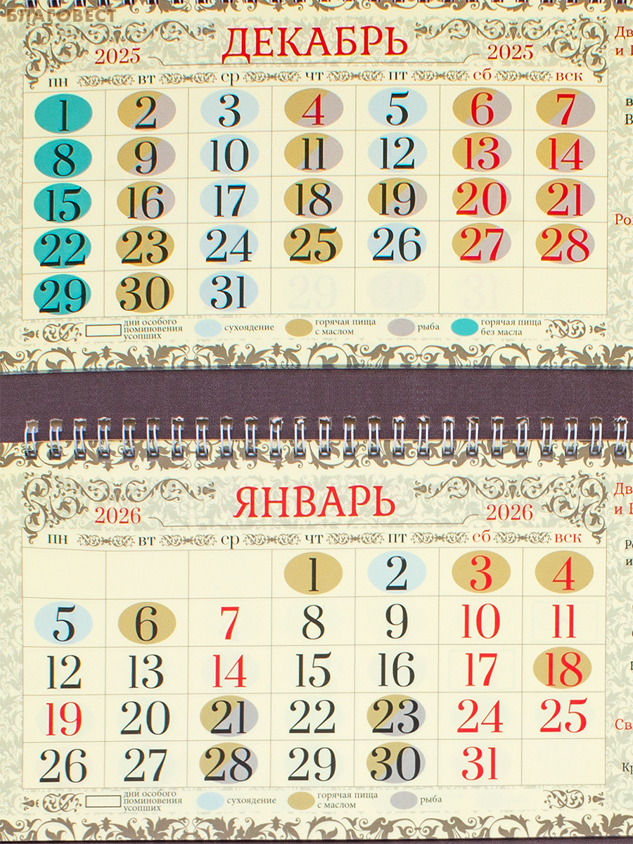 Удобный формат — три блока на спиралях для комфортного просмотра трех месяцев одновременно.