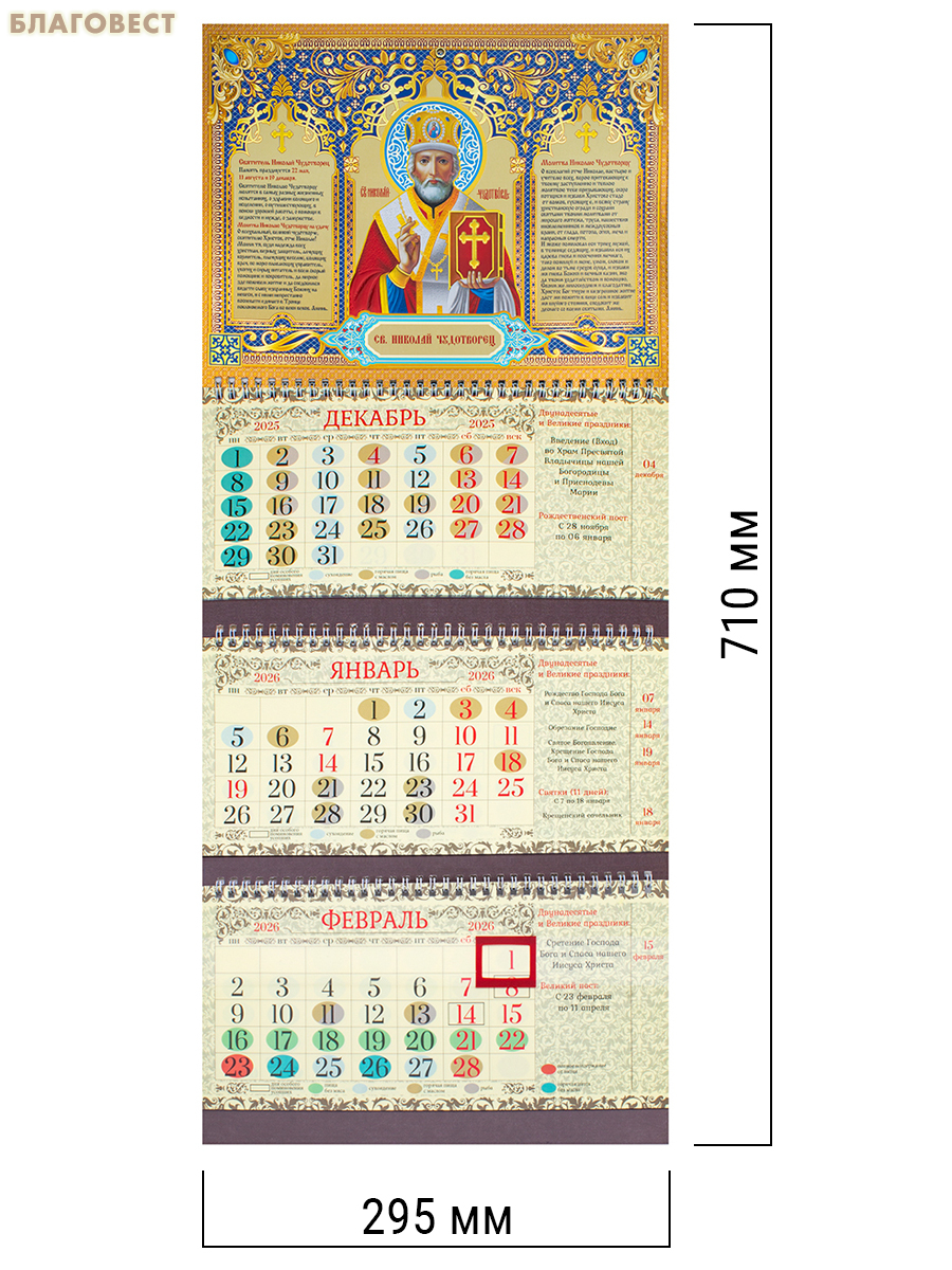 Православный квартальный календарь Святитель Николай Чудотворец на 2026 год