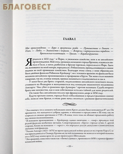 Образ побеждающего все житейские невзгоды Робинзона знаком нам с детства. Создатель этого персонажа Даниэль Дефо родился в 1663 году в Лондоне в семье простого мясника. Тяга к сочинительству проснулась в нем рано. Еще до появления прославившего его "Робинзона" он считался в Англии даровитым писателем; и после из-под его пера вышло немало сочинений. Почему же именно описание робинзонады прославило имя Дефо во всем мире? Для Англии того времени это был новый вид литературы. Не случайно после "Робинзона" возник стойкий спрос на такую псевдодокументальную прозу. Во-вторых, Дефо описывал человека нового типа. Находясь в постоянном диалоге с богом, он, тем не менее, самостоятельно решает все трудные проблемы и задачи, которые ставит перед ним жизнь. Именно такой глубоко верующий человек-труженик и человек-борец был идеалом английского протестантизма. В советских публикациях "Робинзона" редакторы эту религиозную составляющую романа неизменно выбрасывали, что превращало знаменитое произведение Дефо в литературу почти детскую. В данном издании текст дан полностью, без купюр. Он включает и вторую часть романа, отечественному читателю почти незнакомую. Текст знаменитого романа Даниэля Дефо дан в переводе Любови Алексеевны Мурахиной-Аксеновой. Свое детство она провела в Германии, где фамилия ее отца - фон Цеппелин - была хорошо известна. Отказавшись от солидного наследства в пользу сестры, она переехала в Россию. Училась в Медико-хирургической академии, работала телефонисткой, занималась подпольной политической деятельностью. И все же главным в ее жизни были переводы. Она самостоятельно освоила восемь языков, читала на санскрите, прекрасно знала английский. Не удивительно, что ее перевод "Робинзона" очень точно соответствует тексту оригинала. В оформлении книги использованы рисунки талантливого английского иллюстратора и графика Уолтера Стенли Пейджета. Будущий художник родился в 1863 году. Королевскую академию художеств он закончил с золотой медалью, а потом долгое время занимался иллюстрированием книг и журналов. Он был особо скрупулезен в изображении костюмов своих персонажей, что помогло ему в конце XIX века при работе над "Робинзоном" - все рисунки в этой книге подкупают своей детальной достоверностью. Помимо Дефо, Уолтер Пейджет иллюстрировал произведения Скотта и Стивенсона. Его старший брат Сидни Пейджет также был художником; он вошел в историю как автор иллюстраций к серии рассказов о Шерлоке Холмсе. В данном издании текст всемирно знаменитого романа Даниэля Дефо "Жизнь, необыкновенные и удивительные приключения Робинзона Крузо" в переводе Л. А. Мурахиной-Аксеновой приведен полностью, без сокращений, которые долгое время заставляли воспринимать первую часть этой дилогии исключительно как детскую книгу. Вторая часть романа практически незнакома отечественному читателю.