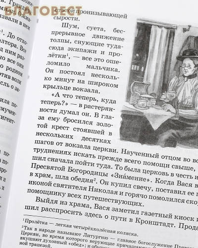 Этот небольшой детский рассказ – быль. В нем мы познакомимся с мальчиком четырнадцати лет, которого Господь привел в конце девятнадцатого века к великому русскому пастырю – святому Иоанну Кронштадтскому. В этом незамысловатом рассказе дети увидят великого святого глазами своего сверстника, и может быть это поможет им по-новому взглянуть на жизнь этого праведного человека, сделают его ближе и понятнее. В издании для лучшего восприятия издатели поместили несколько черно белых фотографий, изображающих Москву, Санкт-Петербург и некоторые другие места России, упомянутые в тексте. Книга рассчитана на детей среднего и старшего школьного возраста.