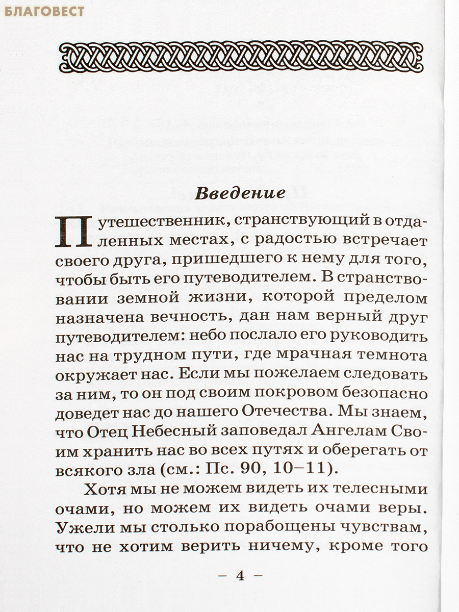 Ангел Хранитель пребывает с нами незримо и неотлучно — от самого крещения до последнего земного дня. По повелению Господню, он охраняет нас от бед, таинственно наставляет на добрые и полезные дела и помогает идти путём спасения. По своей любви к людям Ангел Хранитель возносит наши молитвы к Богу и ходатайствует за нас перед Ним. Мы же, к сожалению, часто забываем о своём невидимом спутнике, редко молимся ему и не благодарим за незримую помощь.