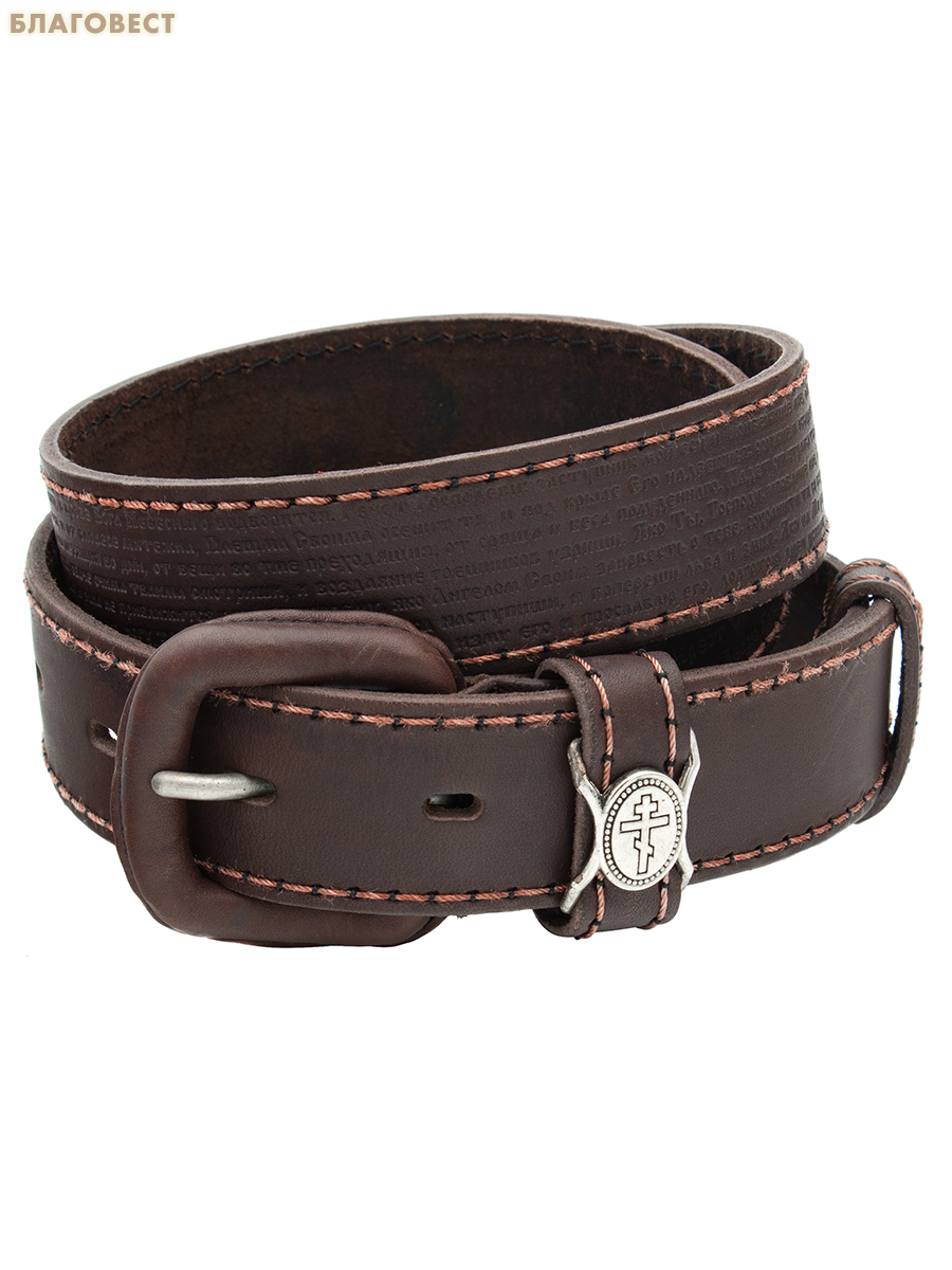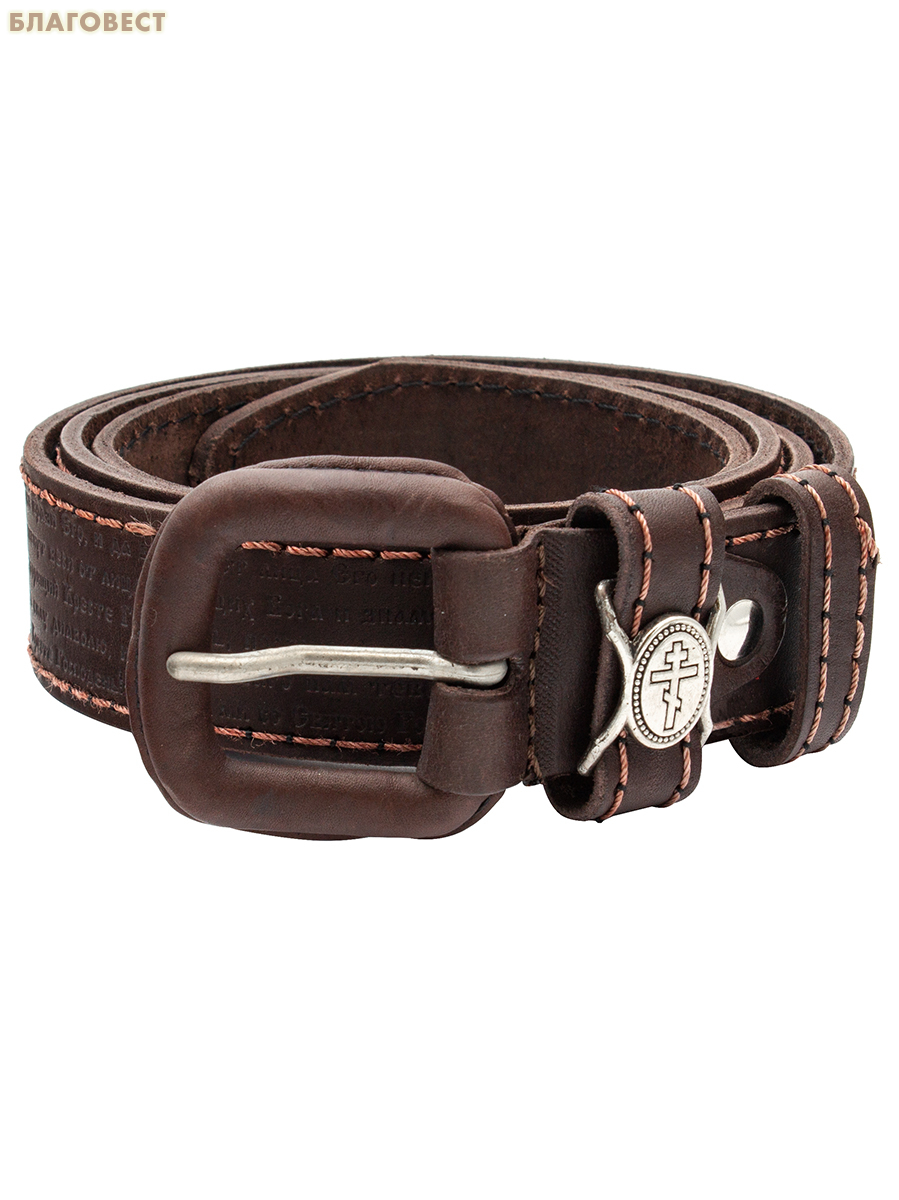 Ремень мужской, тиснение молитвы снаружи. Натуральная кожа. Длина изделия 104см, ширина 3,5см