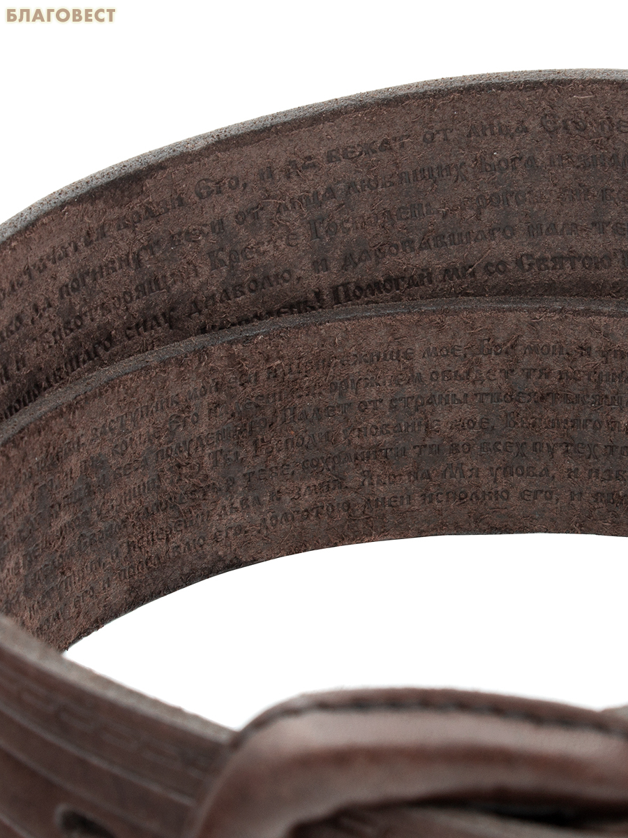 Этот ремень — не просто аксессуар, а сильный молитвенный щит, который всегда с вами. Изготовлен из натуральной шорно-седельной кожи растительного дубления. Методом объемного тиснения на ремень нанесен текст 90-го псалма ("Живый в помощи Вышняго...") и молитва Честному Кресту "Да воскреснет Бог...".