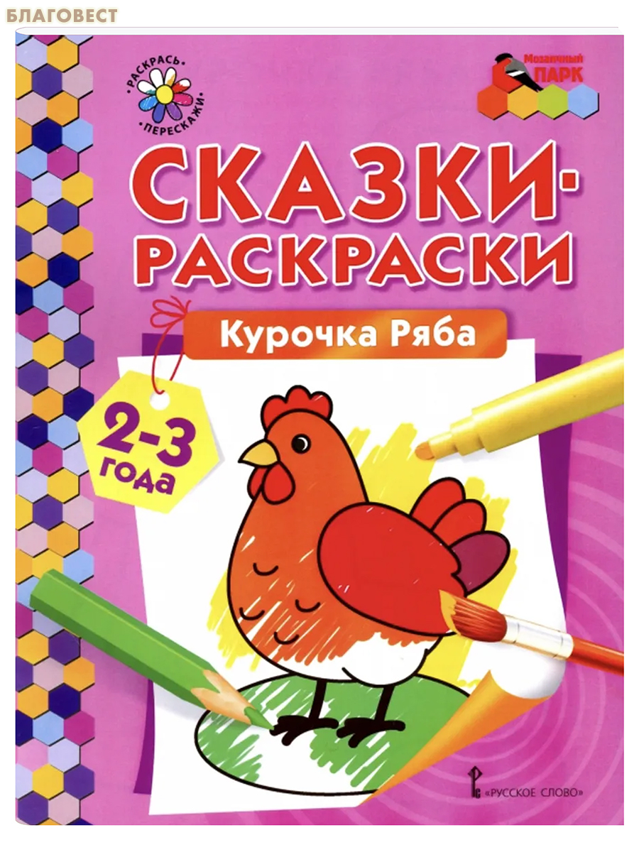 Серия книг «Сказки-раскраски» является дополнением к хрестоматиям для детского сада. В этом издании для детей группы раннего возраста (2-3 года) раскраска к сказке «Курочка Ряба". Прослушав сказку, прочитанную взрослыми, а потом раскрашивая картинки на знакомый сюжет, ребенок лучше запомнит содержание и сможет по картинкам пересказать его.