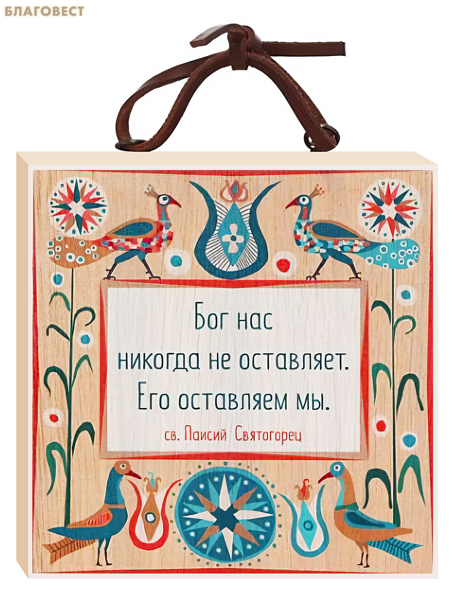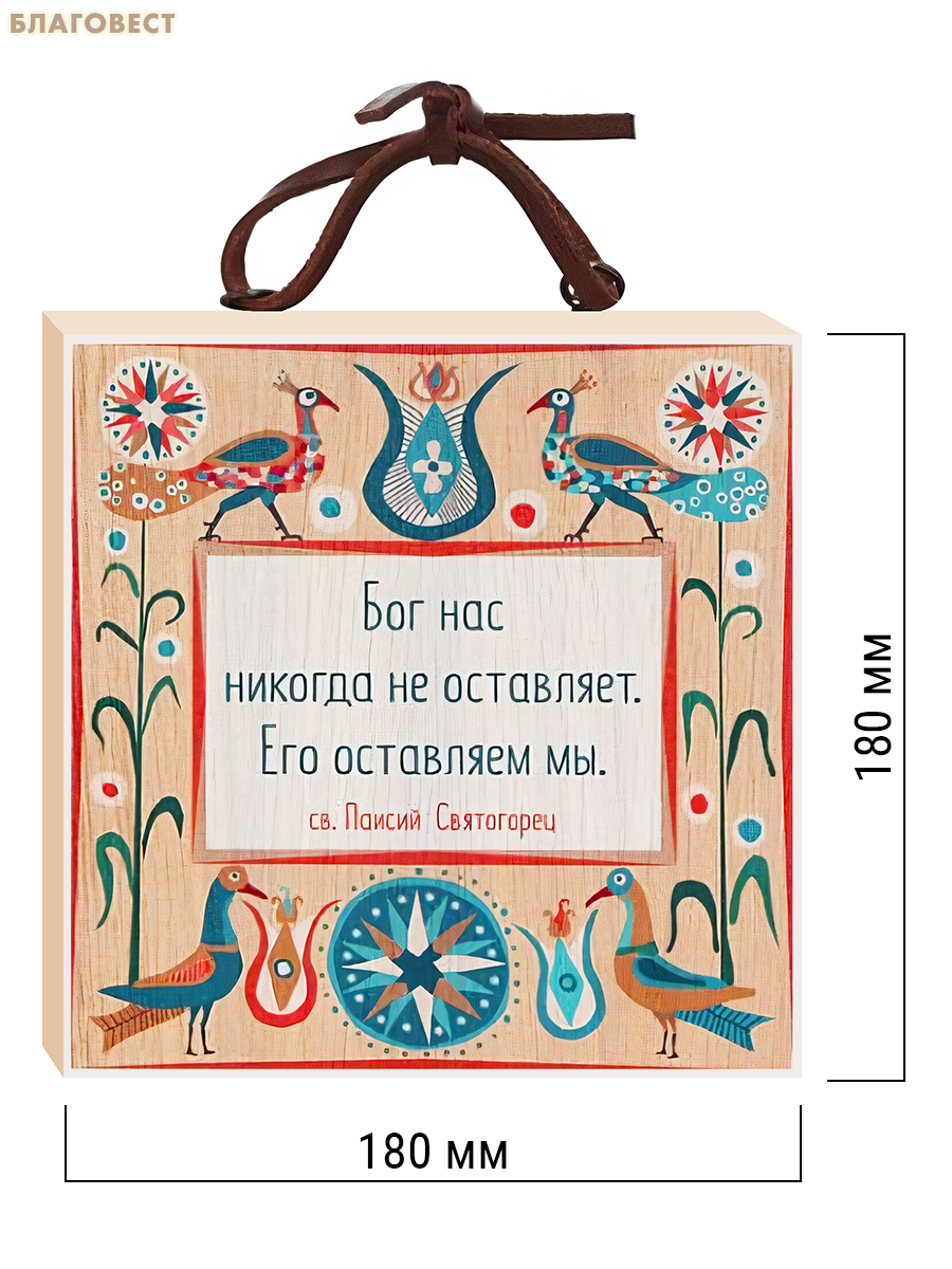 Табличка настенная «Бог нас никогда не оставляет...», дерево (липа), пигментные краски, шнурок