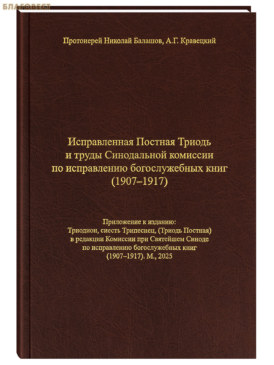 Научное переиздание книги: «Триодион, сиесть Трипеснец [Триодь Постная], в редакции Комиссии при Святейшем Синоде по исправлению богослужебных книг (1907–1917)». Издание подготовлено по благословению Святейшего Патриарха Кирилла совместно с комиссией Межсоборного Присутствия по богослужению и церковному искусству. В нём воспроизводится одобренный Святейшим Правительствующим Синодом в 1909 году исправленный текст Триоди Постной, впервые изданный Московской синодальной типографией в 1912 году.