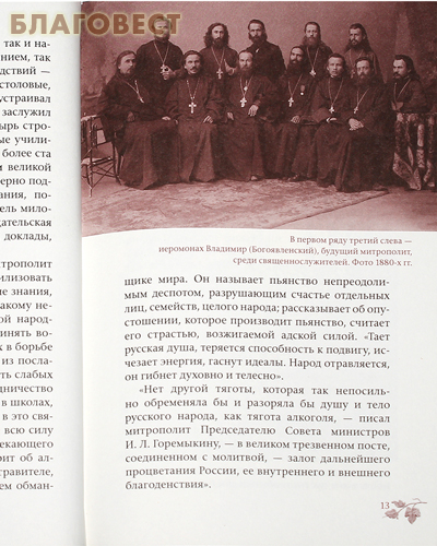 Книга адресована как преподавателям курсов "Основы православной культуры", так и широкому кругу читателей, интересующихся историей социального служения Русской Православной Церкви, возглавившей движение за трезвость в лице своего выдающегося архипастыря.