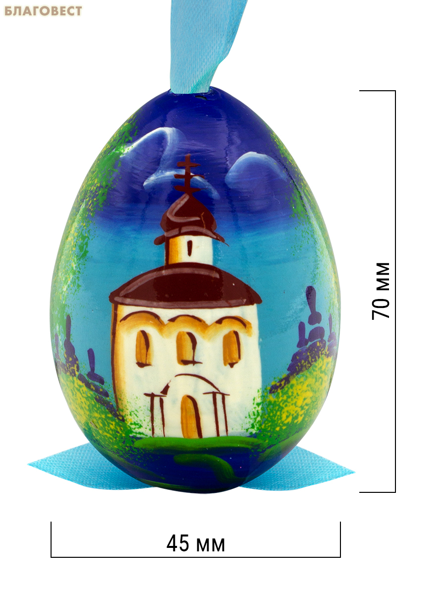 Высота яйца 7 см. К яйцу прикреплена элегантная лента (цвет ленты в ассортименте), которая добавляет изделию праздничный вид и позволяет использовать яйцо как подвеску или декор.