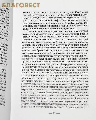 «…Люди, о которых идет речь на страницах этой книги, сознательно выбрали Добро, выбрали Бога, - как единственный источник всякого Блага. Они были готовы пожертвовать всем на свете, и даже своей жизнью, для того, чтобы Доброе, Святое и Вечное - побеждало. Побеждало - в них самих, и - во всех, кого они встретили на своем пути…»